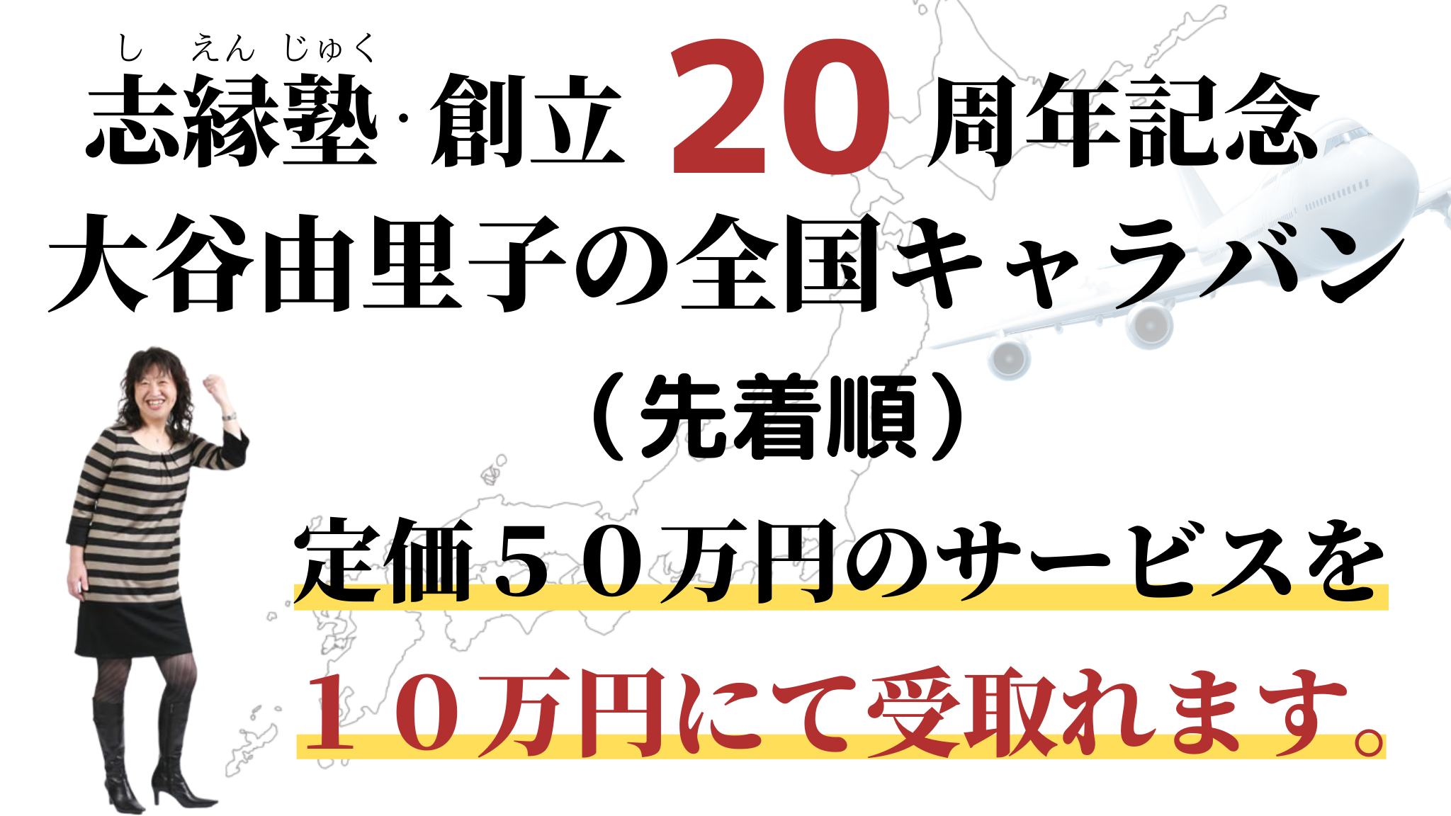 いつもありがとうございます。本プロジェクトは志縁塾(しえんじゅく)の創立【20周年】に当たり記念行事として開催します。ぜひ、大谷由里子をご活用ください。