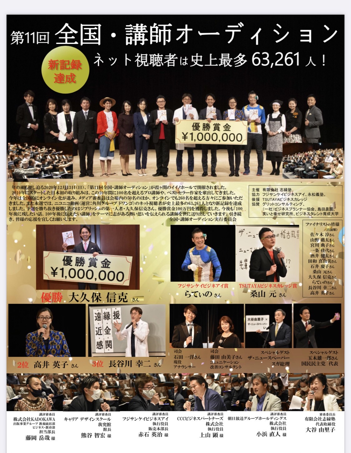 2020年12月 優勝賞金100万円<第11回>全国・講師オーディションを開催。